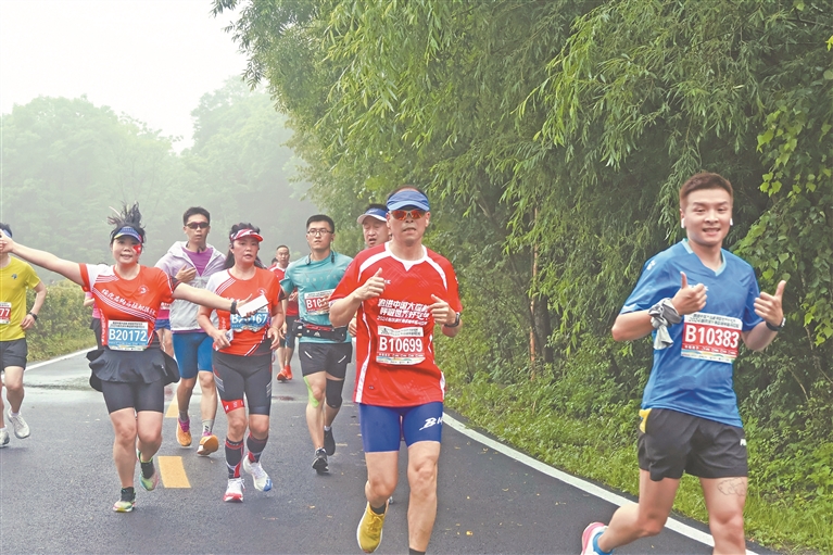 隨著發(fā)令槍響,7380名選手陸續(xù)沖出起跑線,從老山門出發(fā),途經(jīng)神龜石、月牙湖、長壽泉、丞相峰,遠(yuǎn)眺南極仙翁,沿途領(lǐng)略北國森林的壯美風(fēng)光,碧樹藍(lán)天相映成趣,盡顯生態(tài)魅力。賽道上,有沖鋒在前的資深跑者,有不甘落后的新人跑者,更有“以跑為樂”運(yùn)動團(tuán)體,以鏗鏘步履跑出一道道靚麗風(fēng)景線。