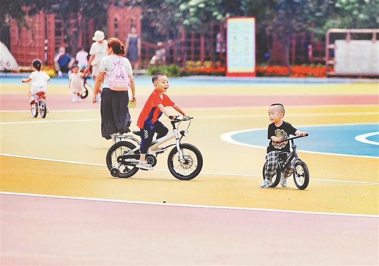 日前,哈爾濱市香坊區(qū)勞動公園內(nèi),許多家長和孩子一起游玩、健身、野餐、散步。家住附近小區(qū)的一位居民說,廣場彩化后整個公園變得更有魅力,孩子每天都要過來玩一玩。