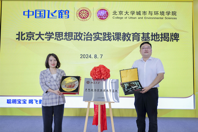 飛鶴乳業(yè)黨委副書記李玉蘋與北京大學(xué)城環(huán)學(xué)院副書記金鑫共同為北京大學(xué)思想政治實(shí)踐課教育基地揭牌