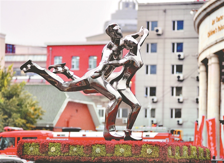 速滑運動雕塑。