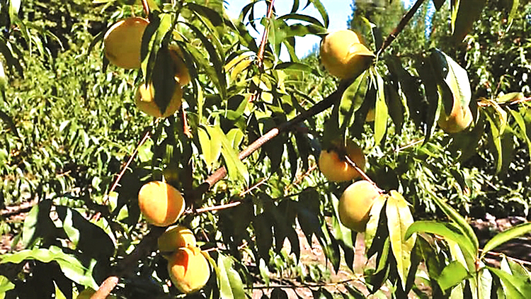 黃桃綴滿枝頭。