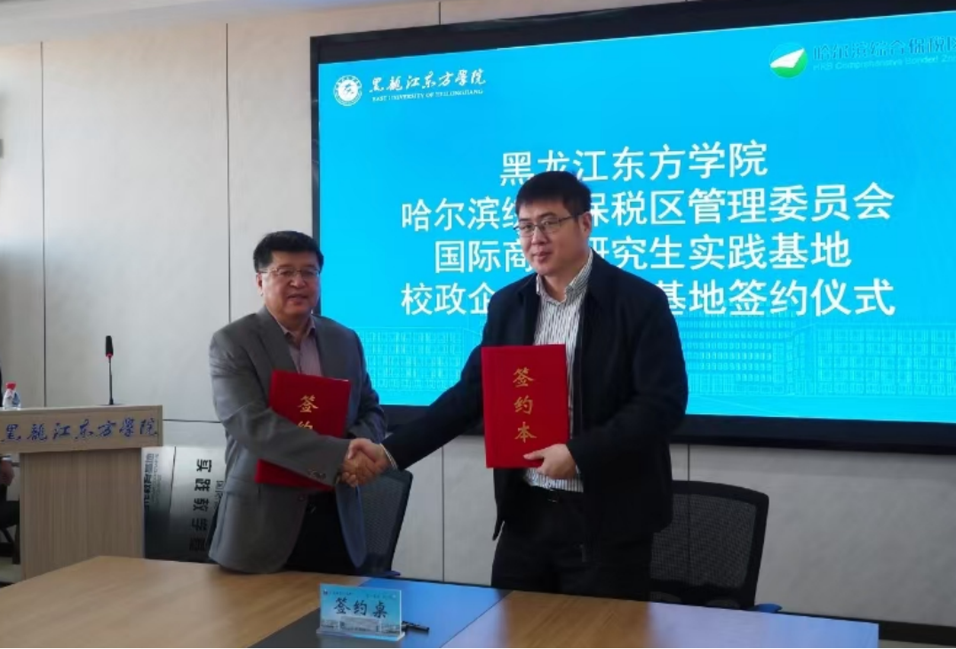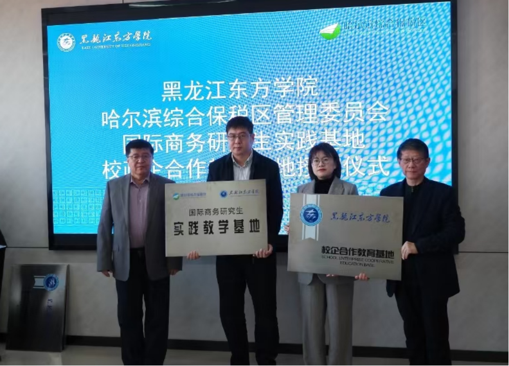 黑龍江經(jīng)濟(jì)網(wǎng)訊(記者李凌雪)11月20日,哈爾濱綜合保稅區(qū)與黑龍江東方學(xué)院舉行校政企產(chǎn)教研發(fā)展戰(zhàn)略合作協(xié)議簽約授牌儀式。哈爾濱綜合保稅區(qū)副主任張旭與黑龍江東方學(xué)院副校長程延江共同為國際商務(wù)研究生實(shí)踐基地、校企合作教育基地授牌并簽署合作協(xié)議。