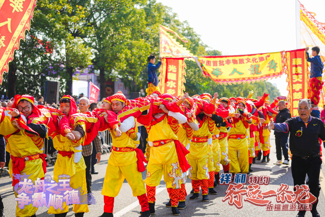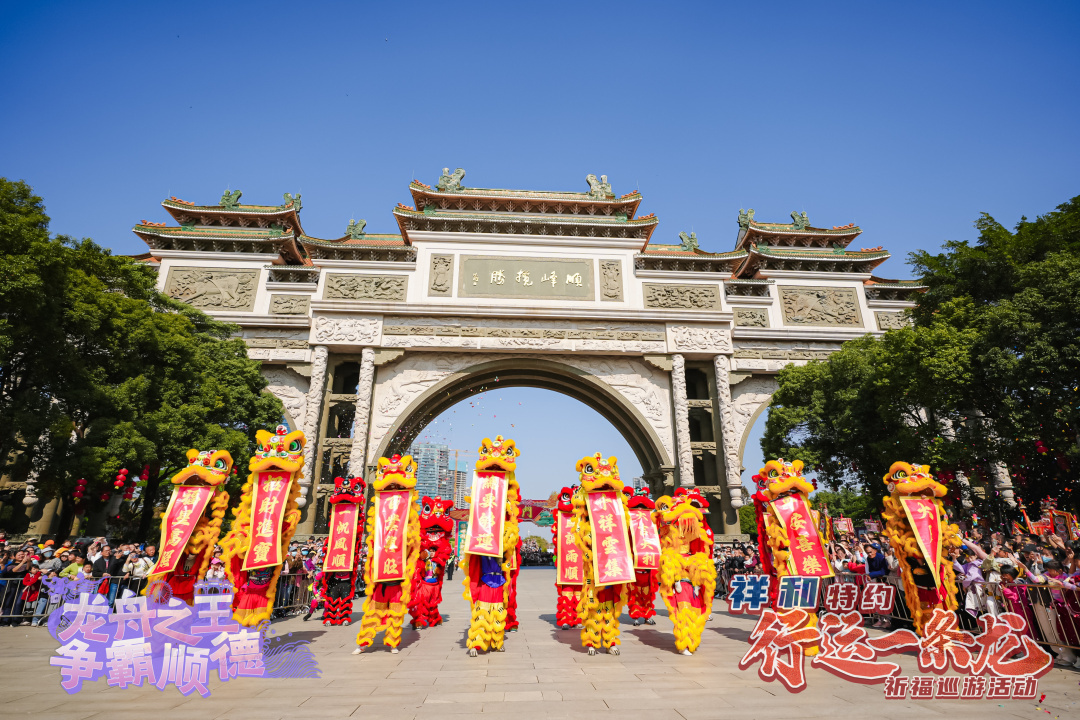 解鎖龍文化,體驗新玩法;打造新民俗,巡游好歡樂?!靶羞\一條龍”祈福巡游活動是順德全新打造的龍舟文化新民俗,現(xiàn)已成功舉辦兩屆。巡游以“拜龍母”“龍眼點睛”等民俗儀式為核心,凝練“行龍運,接龍?!钡脑⒁?,讓市民游客近距離感受民俗活動的獨特魅力。