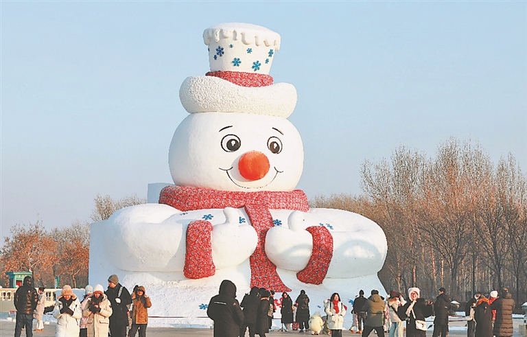 換新裝后的《雪人先生》,顏值飆升,秒變東北年俗文化的“代言人”,冰天雪地不再清冷孤寂,讓每一位來到太陽島雪博會的游客都能感受到東北人的豪爽、熱情與對生活滿滿的熱愛。
