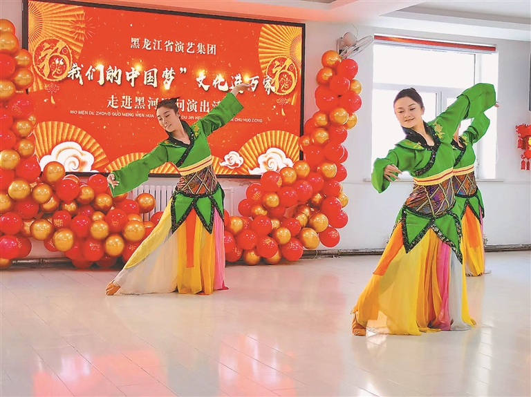 本報(bào)21日訊(王靜鉬 記者 邵晶巖)21日,省演藝集團(tuán)演職人員深入黑河愛輝區(qū)四個(gè)社區(qū)開展“我們的中國夢(mèng)”文化進(jìn)萬家——走進(jìn)黑河活動(dòng),以群眾喜聞樂見的形式,為群眾送來精彩的文藝演出和新春祝福。