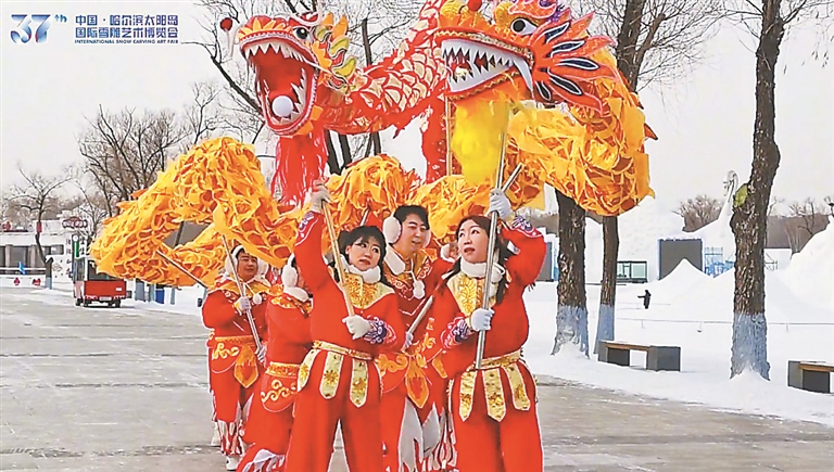 本報訊(記者劉艷)近日,太陽島雪博會上演了一場別開生面的舞龍表演。伴隨著喧天的鑼鼓聲,色彩斑斕的龍身翻騰躍動,激昂鑼鼓奏響新年,點燃新春熾熱氛圍。