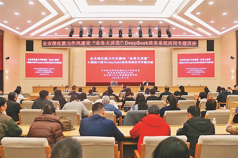 本報訊(記者 趙一諾)為加快提升機關(guān)干部數(shù)字素養(yǎng)與智能技術(shù)應(yīng)用能力,助力政務(wù)工作智能化轉(zhuǎn)型升級,近日,哈爾濱市直機關(guān)工委、哈爾濱市科協(xié)、哈爾濱工業(yè)大學(xué)繼續(xù)教育學(xué)院聯(lián)合舉辦哈爾濱市深化能力作風建設(shè)“業(yè)務(wù)大講堂”——AI模型介紹與DeepSeek政務(wù)系統(tǒng)應(yīng)用專題講座。哈爾濱市直機關(guān)和部分區(qū)縣共200余名機關(guān)干部參加學(xué)習。