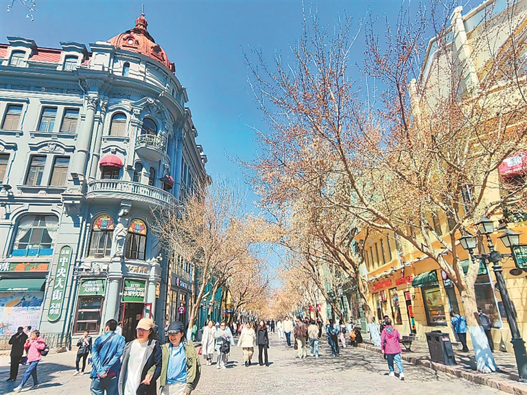 近日,哈爾濱市天空晴朗,空氣優(yōu)良,人們紛紛外出活動(dòng),盡享美好的春光。在松花江畔、中央大街、建筑藝術(shù)廣場(chǎng),市民游客有的在觀賞美麗江景,有的在逛街購(gòu)物,有的在拍攝盛開(kāi)的桃花。