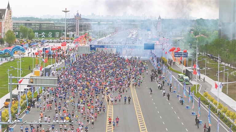隨著發(fā)令槍響,選手們?nèi)珉x弦之箭般沖出起跑線,他們身著各式運動服,與樂安新區(qū)的生態(tài)賽道交相呼應(yīng),形成了一道亮麗的風(fēng)景線。