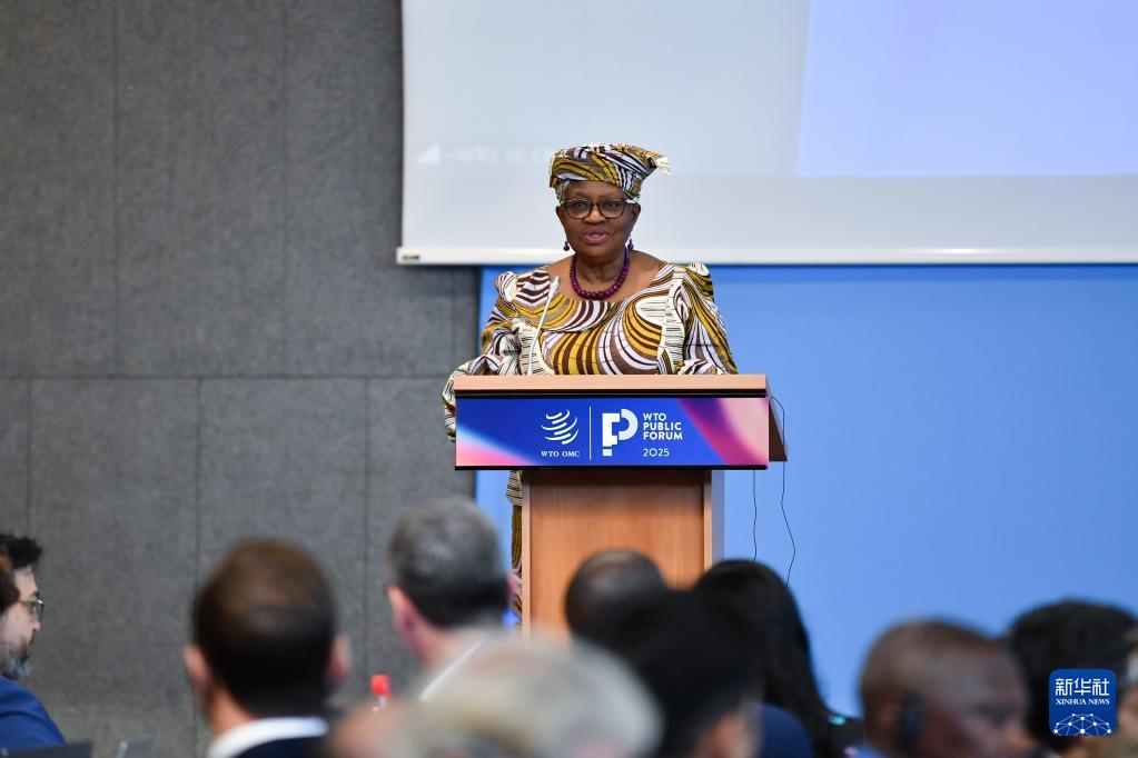 9月17日,在瑞士日內(nèi)瓦世貿(mào)組織總部,世貿(mào)組織總干事伊維拉在《2025世界貿(mào)易報告》發(fā)布會上講話。新華社記者 連漪 攝