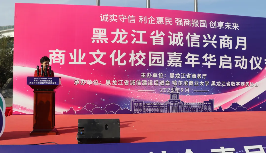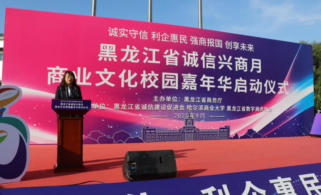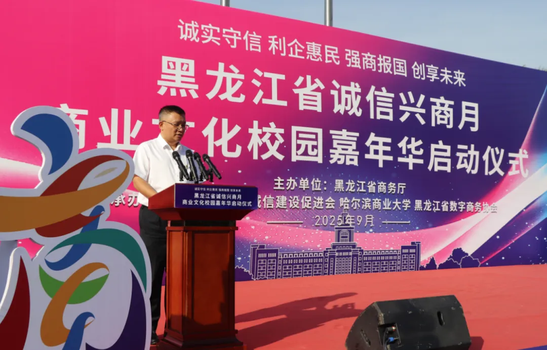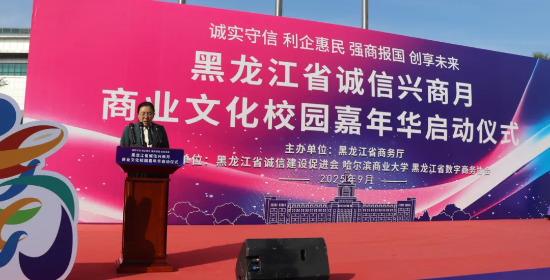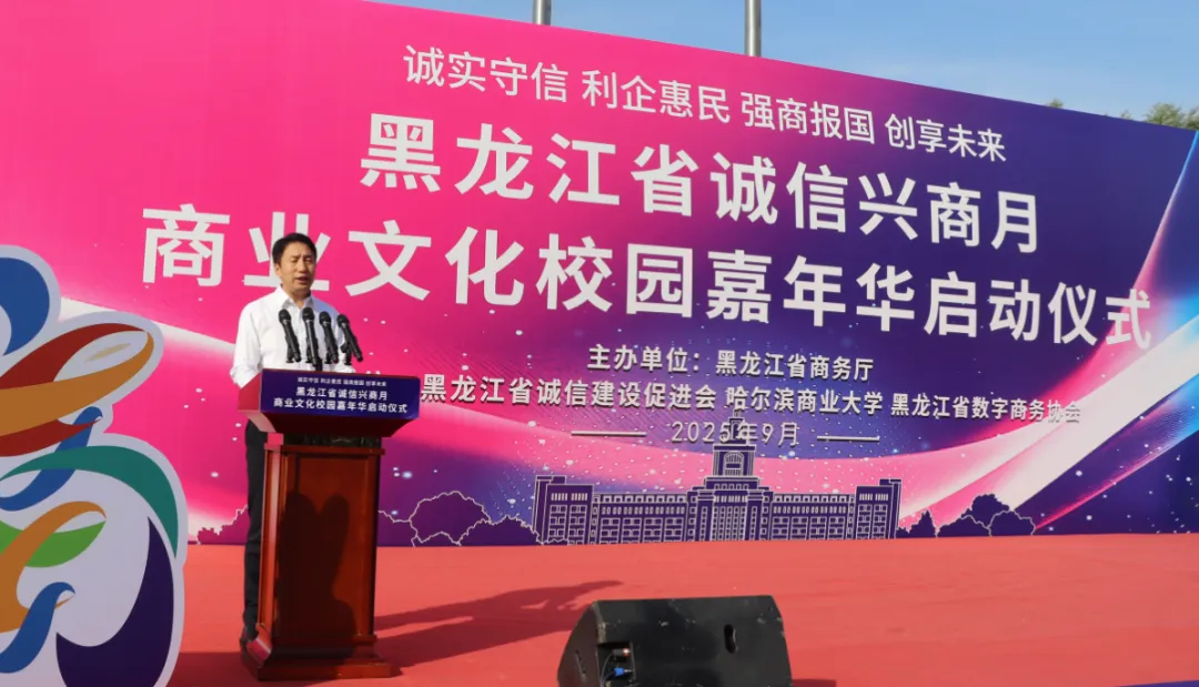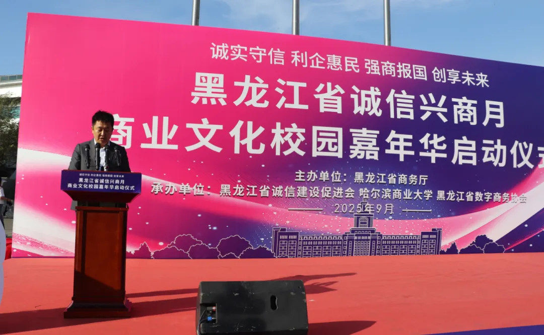 黑龍江經濟網訊(朱麗穎 記者崔冰)9月23日,由黑龍江省商務廳主辦,黑龍江省誠信建設促進會、哈爾濱商業(yè)大學、黑龍江省數字商務協(xié)會共同承辦的黑龍江省2025年"誠信興商宣傳月"啟動儀式在哈爾濱商業(yè)大學江北校區(qū)隆重舉行。