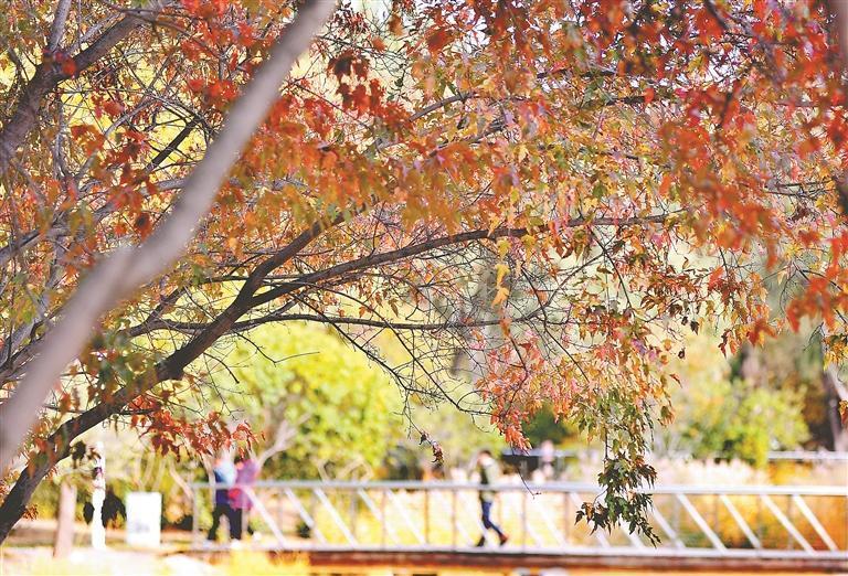 近日,哈爾濱市道里區(qū)群力景江東路附近的綠地、公園內(nèi),樹上的葉子五彩斑斕,地面上鋪了一層落葉,美麗的秋景如同油畫一般,吸引人們駐足觀看、拍照。國(guó)慶中秋假期,冰城隨處可見迷人的秋色,市民不出市區(qū)便可觀賞到美景。