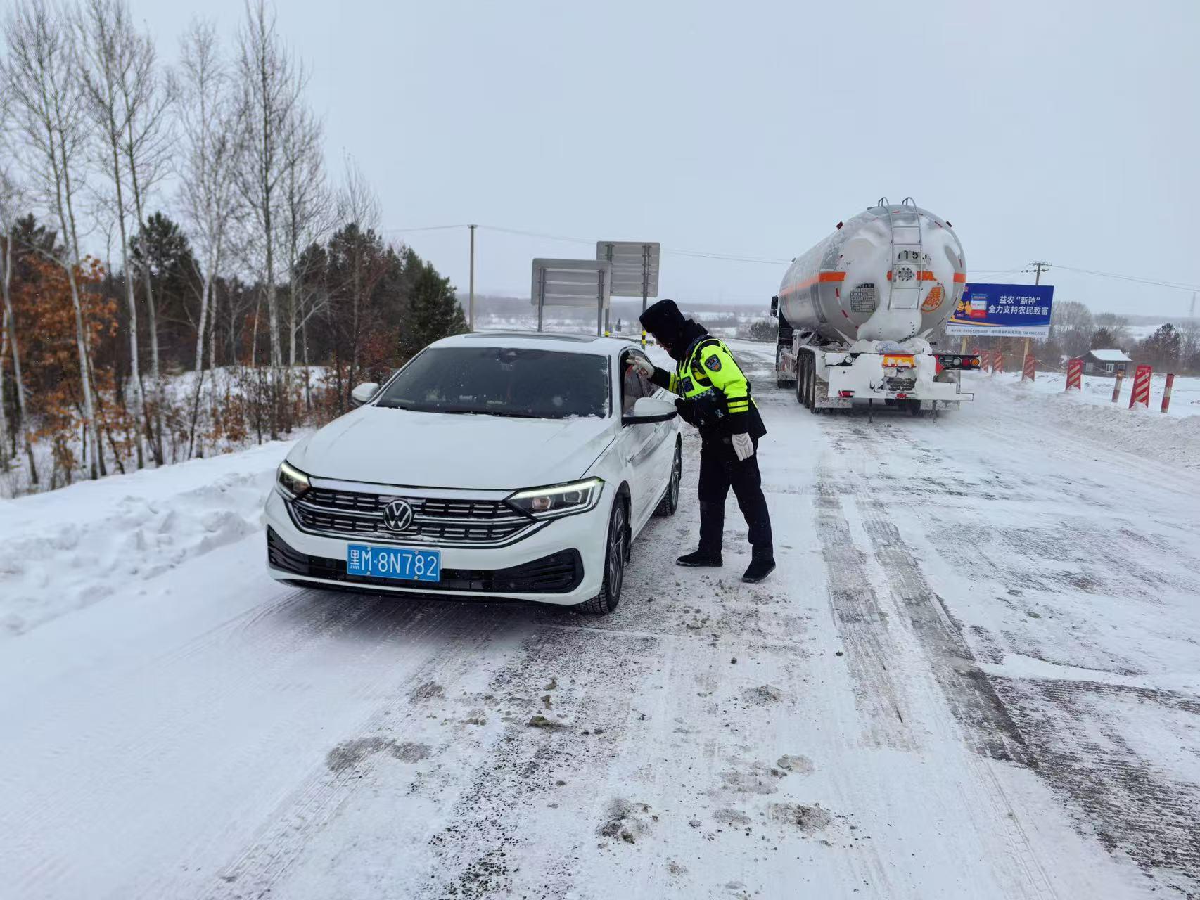 隨后,民輔警駕駛警車小心翼翼地穿行在積雪路段,一邊緩慢行駛,一邊實時觀察路面情況,并不時向游客講解雪天出行安全常識,提醒景區(qū)內(nèi)棧道濕滑需謹(jǐn)慎慢行。臨別前,呼瑪公安民輔警再次叮囑游客注意游覽安全,及時關(guān)注天氣變化和返程路況,必要時可隨時聯(lián)系景區(qū)執(zhí)勤崗點求助。