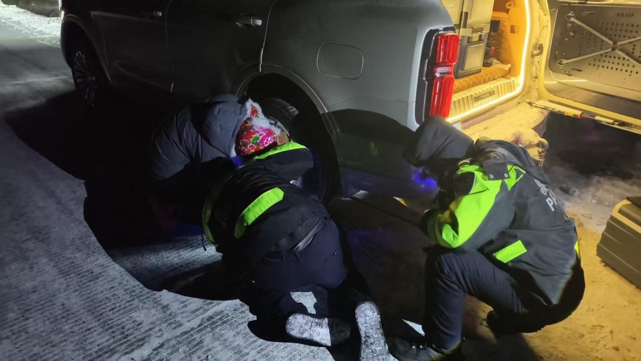 黑龍江經(jīng)濟(jì)網(wǎng)訊(婁暢)近日,呼瑪縣轄區(qū)強(qiáng)降溫、降雪伴隨大風(fēng)天氣,給道路通行帶來極大安全隱患,呼瑪縣公安局民輔警按照惡劣天氣應(yīng)急處置預(yù)案開展巡邏防控,將巡邏管控與便民服務(wù)相結(jié)合,及時(shí)為群眾解決出行難題。12月25日晚,民輔警巡邏中及時(shí)救助一臺(tái)爆胎車輛。