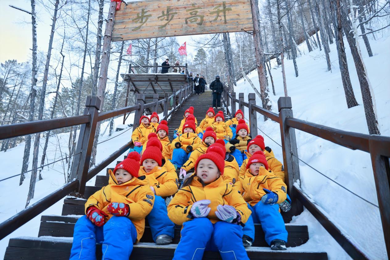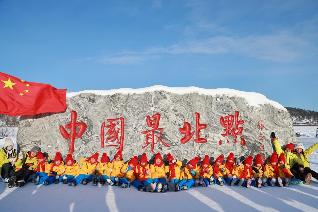 登上觀景臺(tái)那一刻,孩子們便踮起腳尖指向遠(yuǎn)方,擠在欄桿邊,俯瞰龍江在腳下劃出完美的Ω形弧線?!褒埥谝粸澄覀儊砹恕焙⒆觽兊暮奥曊R劃一,隨即爆發(fā)出一陣勝利的歡呼。寒風(fēng)凜冽,卻吹不散他們的熱情?!斑@是我們第三次帶孩子來這里,每一次都有新收獲。”帶隊(duì)老師說,龍江第一灣的壯美雪景與獨(dú)特地理風(fēng)貌,不僅讓南方孩子直觀感受到冰雪的魅力,更讓他們?cè)谟H身實(shí)踐中收獲知識(shí)與成長。這場(chǎng)早已超越普通的研學(xué)之旅,成為連接南北的溫情紐帶,讓冬日嚴(yán)寒因這份童真與堅(jiān)守而格外溫暖。