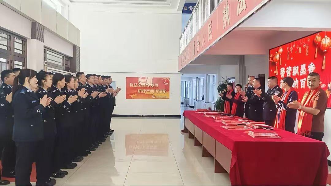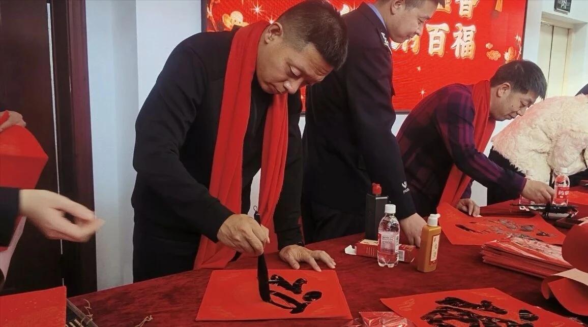 局政委王秀東出席活動(dòng)儀式并致辭,政工室主任劉鐵主持活動(dòng),市書法家協(xié)會名家與該局書法愛好者齊聚一堂,為堅(jiān)守崗位的民輔警送上新春祝福與文化滋養(yǎng)?;顒?dòng)現(xiàn)場暖意融融、墨香四溢。大紅宣紙整齊鋪展,筆墨硯臺依次排開,書法家們凝神聚力、揮毫潑墨,筆鋒或遒勁有力、或溫婉流暢。一副副寓意深遠(yuǎn)的春聯(lián)躍然紙上,一個(gè)個(gè)飽滿圓潤的“?!弊殖休d著美好期許,既彰顯了中華傳統(tǒng)文化的魅力,又融入了公安工作的使命擔(dān)當(dāng)。
