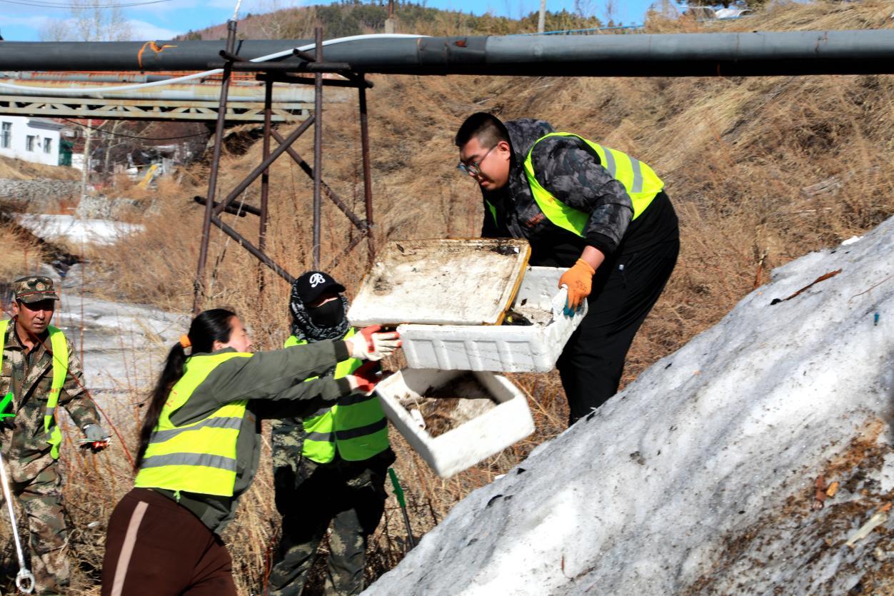 阿木爾林業(yè)局環(huán)衛(wèi)隊(duì)職工正在清理河道垃圾(王力 攝)