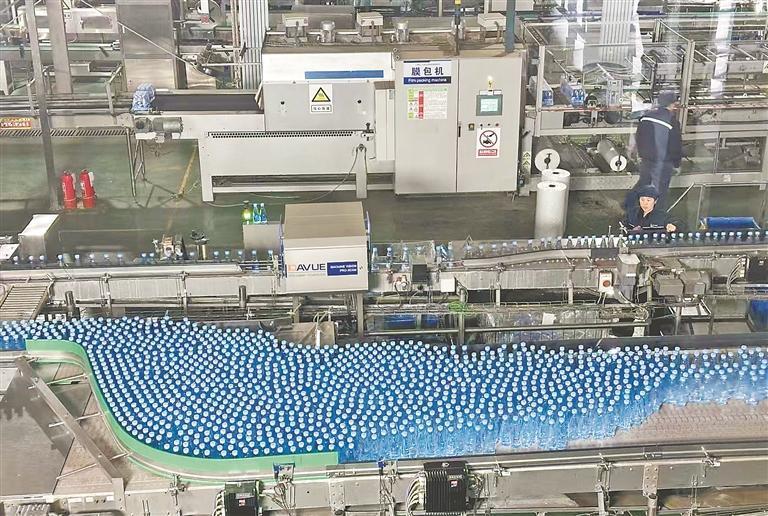 “吹瓶、灌裝、旋蓋一體機是我們生產(chǎn)線上最有含金量的設(shè)備,瓶坯經(jīng)過高溫加熱、壓縮空氣吹制,再完成灌裝、旋蓋,全程無菌操作,確保每一滴水都純潔無瑕。”生產(chǎn)車間主任劉恒介紹,該設(shè)備生產(chǎn)能力可達每秒10瓶,搭配全新的視覺檢測儀、稱重機和每分鐘可打包30箱產(chǎn)品的箱包機,讓生產(chǎn)效率與產(chǎn)品標準雙提升。