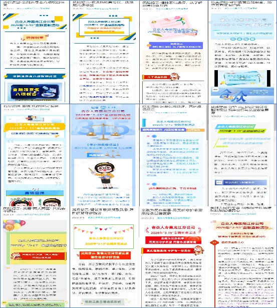 為全面貫徹落實中央經(jīng)濟(jì)工作會議、中央金融工作會議精神,深刻把握金融工作政治性、人民性,助力提升社會公眾金融素養(yǎng),幫助社會公眾增強(qiáng)維護(hù)自身合法權(quán)益的意識和能力。合眾人壽黑龍江分公司按照監(jiān)管部門及總公司有關(guān)工作要求,組織所轄各單位同步全面落實開展2026年“3·15”金融消費者權(quán)益保護(hù)教育宣傳活動。