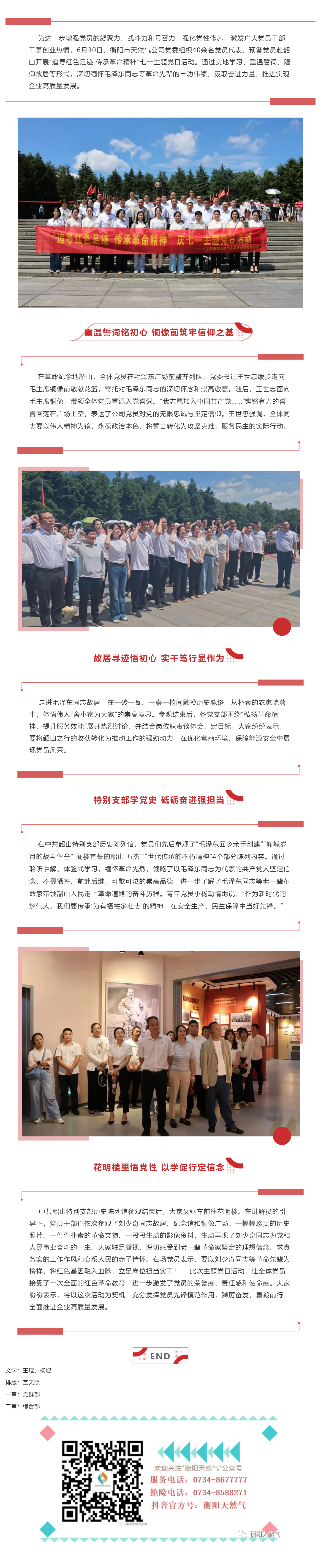 衡陽(yáng)市天然氣公司黨委開展“追尋紅色足跡+傳承革命精神”主題黨日活動(dòng)